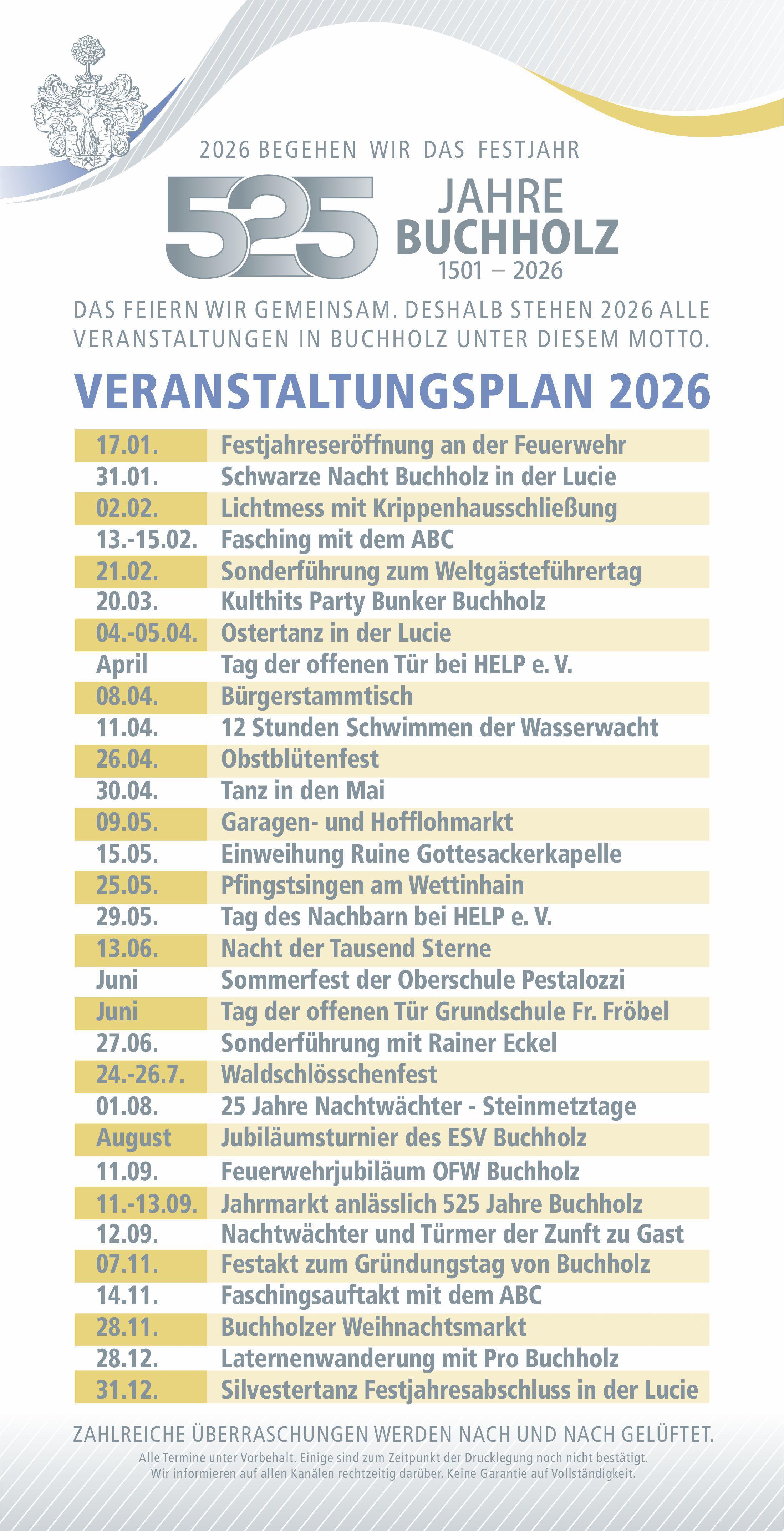 Der Veranstaltunsplan der Reihe 525 Jahre Buchholz.